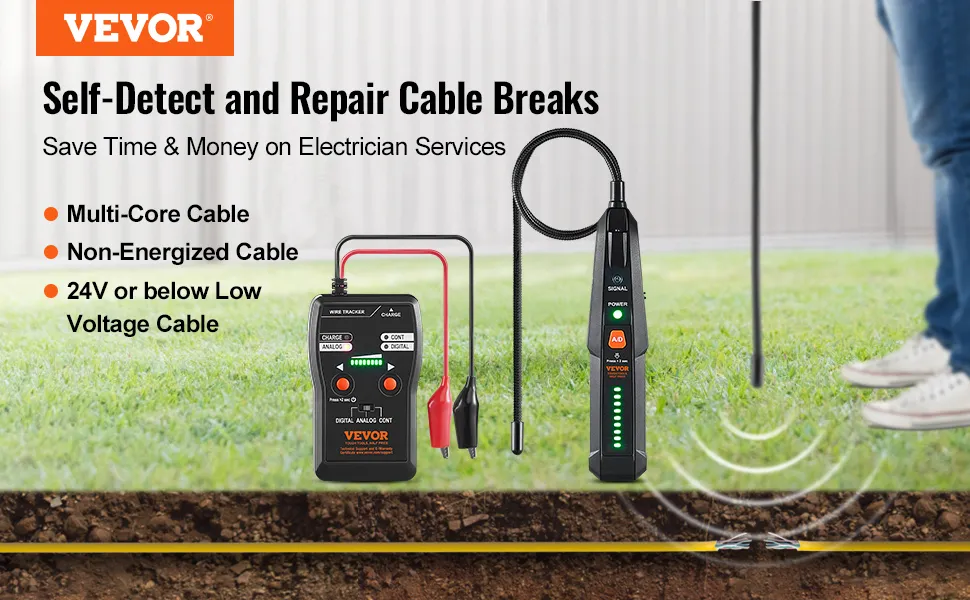 Che tu stia installando una nuova recinzione per animali domestici o individuando cavi di valvole di irrigazione interrate, questo localizzatore di cavi interrati è essenziale. La sua versatilità e precisione lo rendono perfetto per una varietà di attività di ricerca cavi. Le sue elevate capacità di profondità e lunghezza di rilevamento ti assicurano di poter gestire qualsiasi attività con facilità, sia che tu lo stia utilizzando come tester per cavi o come localizzatore di cavi per recinzioni per animali domestici. Affidati a questo strumento per ottenere risultati accurati ogni volta, migliorando la tua efficienza ed efficacia.