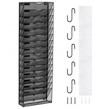 VEVOR Wall-Mounted Newspaper Holder/File Holder with 6 Compartments, Storage Folder for Magazines, Mail, Papers, and Documents, Wall-Mounted Magazine Holder Organizer, Brochure Holder, File Tray for Office and School (Black)