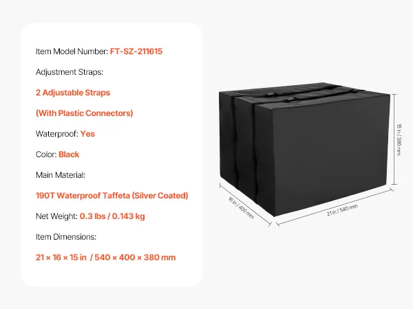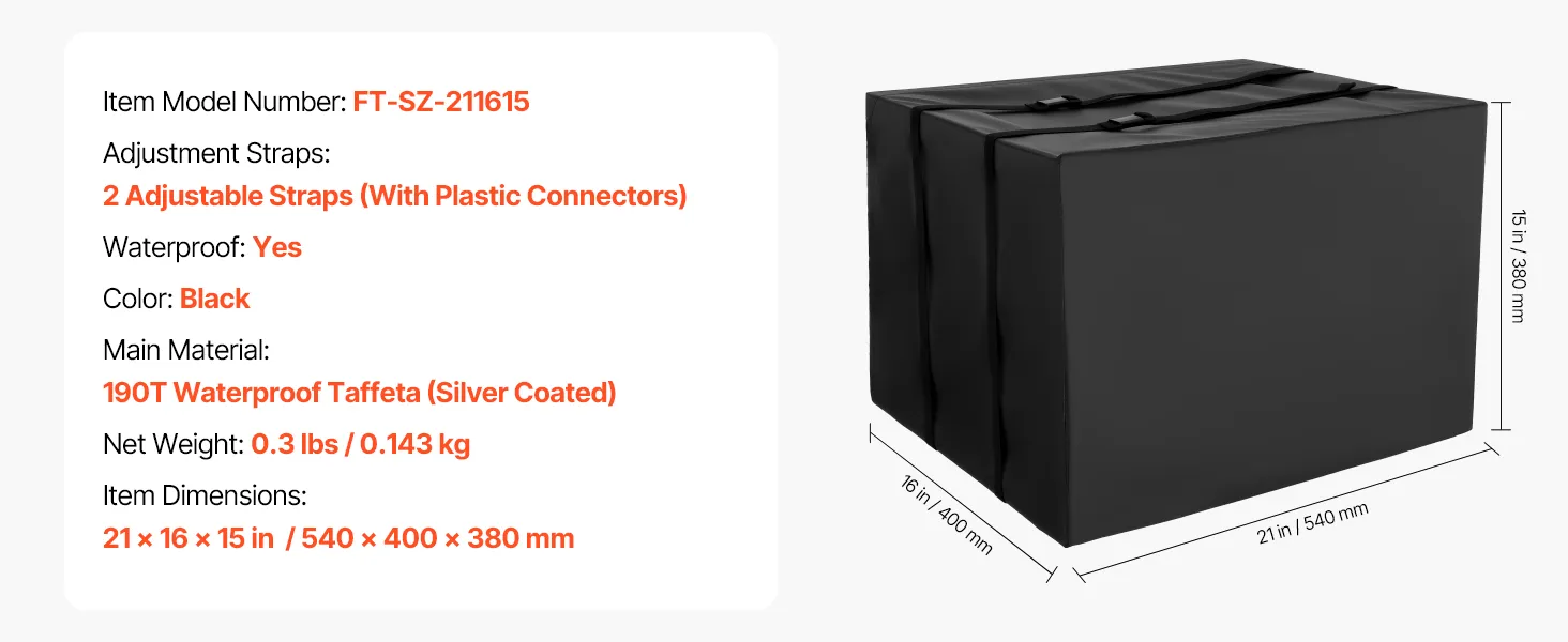 VEVOR Copertura per Aria Condizionata da Esterno 53x40x38 cm, Copertura Protettiva per Condizionatore, Tessuto in Poliestere Impermeabile a Doppio Strato, Cinturino Regolabile, Misura Universale