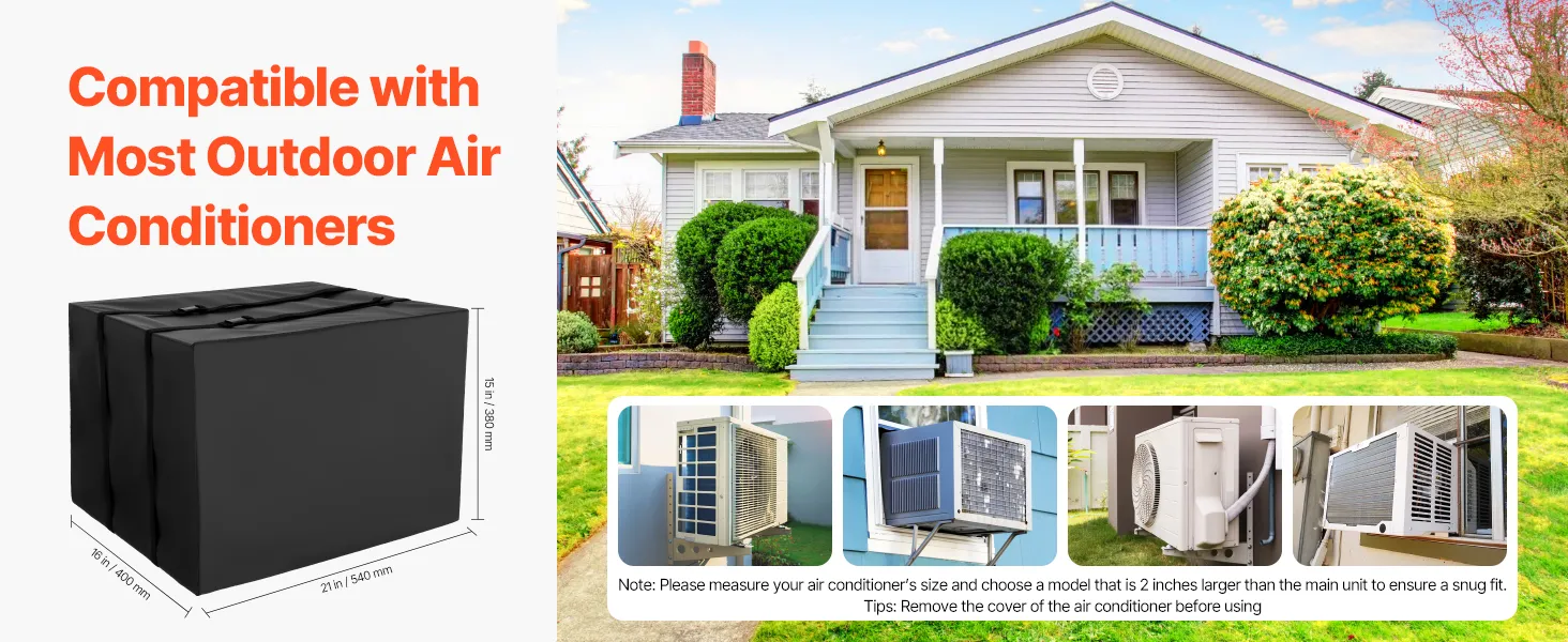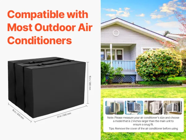 Compatibile con diversi condizionatori d'aria esterni. Per una vestibilità perfetta, scegli un modello 5 cm più grande del tuo condizionatore. Misura con attenzione per evitare problemi di installazione.