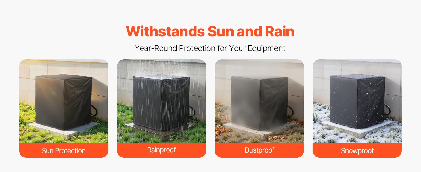 Vestibilità universale: questa copertura per condizionatore d'aria esterna è progettata per adattarsi ai condizionatori standard. Per una migliore vestibilità, scegli un modello 5 cm più grande della misura della copertura