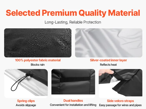 Materiale di alta qualità: questa copertura per condizionatore d'aria esterno presenta un design a tre strati con uno strato esterno in poliestere impermeabile e uno strato interno rivestito in argento, che fornisce una protezione completa