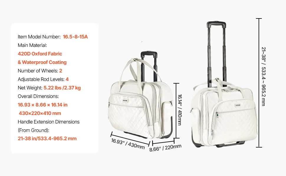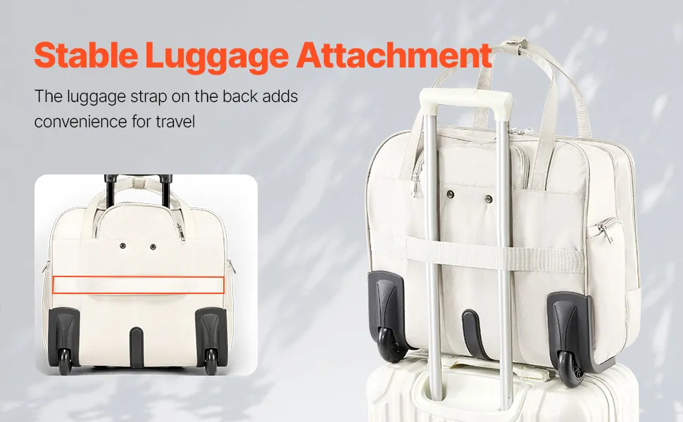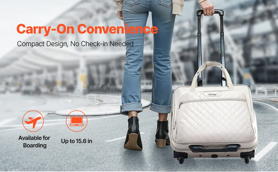 Questa borsa per laptop con rotelle è adatta a laptop da 15,6 pollici e presenta una maniglia telescopica a 4 altezze per un facile trasporto. Con più scomparti e una tasca di rapido accesso, mantiene gli oggetti essenziali organizzati.