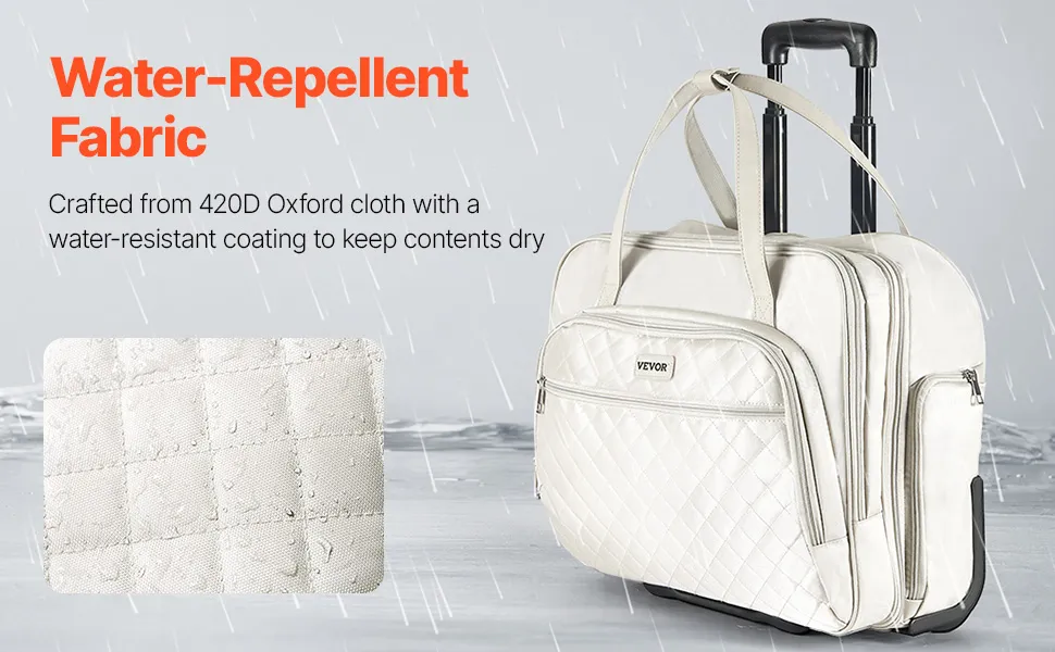 Tessuto resistente, uso duraturo: realizzata in tessuto Oxford 420D di alta qualità, questa borsa per computer con rotelle è resistente agli strappi e all'usura per un uso duraturo. Il rivestimento idrorepellente protegge i laptop e i documenti da pioggia inaspettata, offrendo maggiore tranquillità