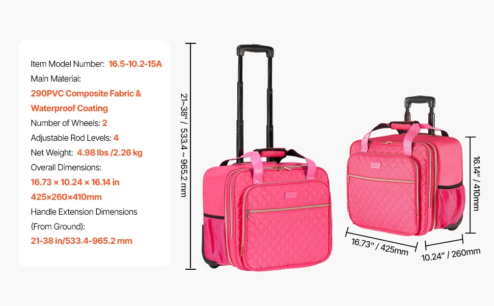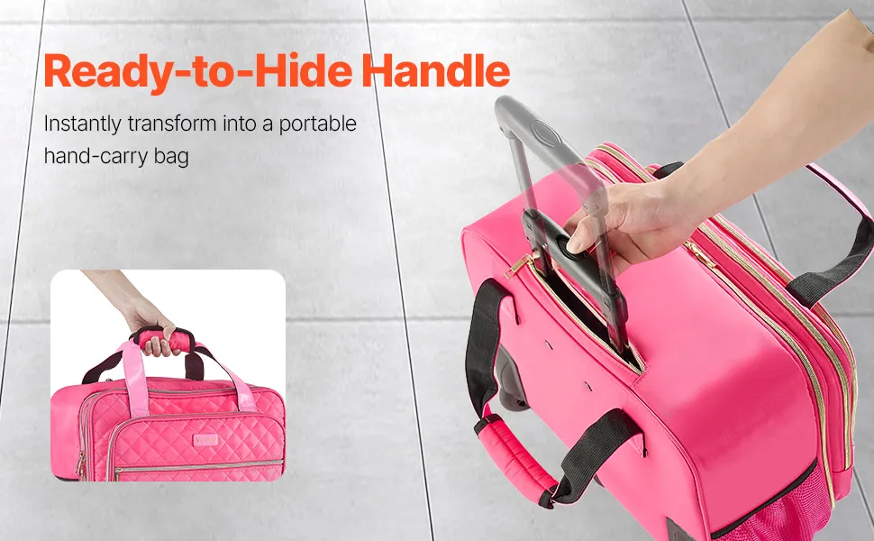 Il tuo elegante compagno di lavoro: questa borsa per laptop con rotelle unisce funzionalità ed eleganza con il suo tessuto in nylon impermeabile rosa da sogno e il design trapuntato chic. Che tu stia andando al lavoro o viaggiando, ti assicura di distinguerti dalla massa