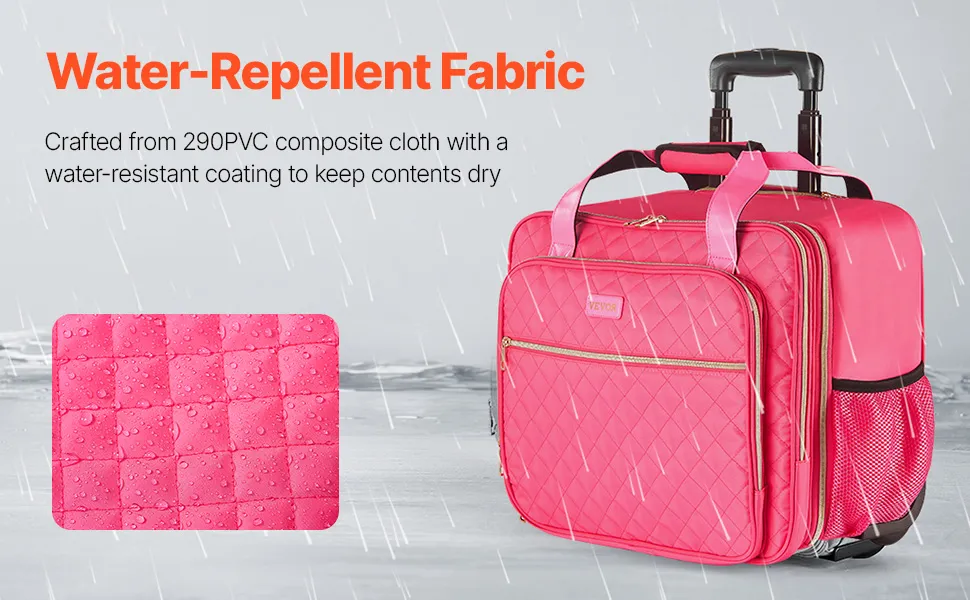 Tessuto resistente, uso duraturo: realizzata in tessuto composito 290PVC di alta qualità, questa borsa per computer con rotelle è resistente agli strappi e all'usura per un uso duraturo. Il rivestimento idrorepellente protegge i laptop e i documenti da pioggia inaspettata, offrendo maggiore tranquillità