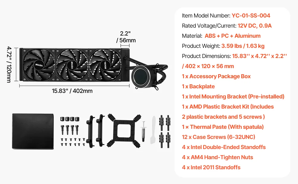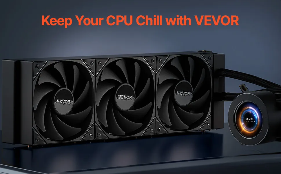 VEVOR Dissipatore di Calore a Liquido per AIO CPU, 3 Ventole PWN Raffreddamento da 120 mm e Pompa, con Display LCD da 283 x 120 x 56 mm, per Intel 115X/1366/2011/1700/1200, AMD AM4/AM5