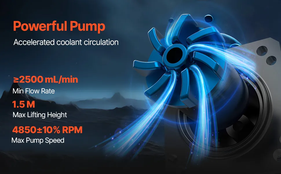 Pompa ad alte prestazioni: la velocità massima della pompa del sistema di raffreddamento ad acqua della CPU può raggiungere i 4850 RPM, con una portata minima di 2500 ml/min. Guida la circolazione del refrigerante in modo più efficiente, dissipando il calore dalla lamiera di rame per una dissipazione ottimale del calore nel sistema di raffreddamento ad acqua del PC