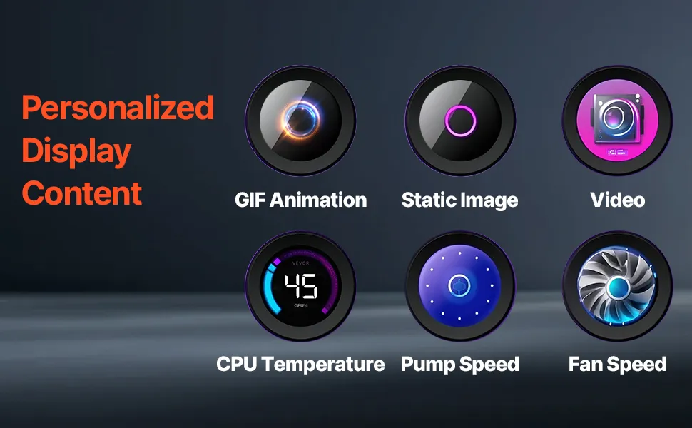 Display personalizzabile: lo schermo LCD da 2,1'' di diametro sul dissipatore a liquido per CPU visualizza animazioni GIF, immagini fisse, video, temperatura della CPU in tempo reale, velocità della pompa e velocità della ventola. Regolalo in base alle tue preferenze per un'esperienza di raffreddamento della CPU migliorata