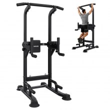 VEVOR Power Tower Dip Station Multifunzionale per Palestra Domestica, Attrezzatura per Allenamento della Forza da 453 kg con 4 Pioli per Fasce, Ganci a J Regolabili e Barre di Sicurezza