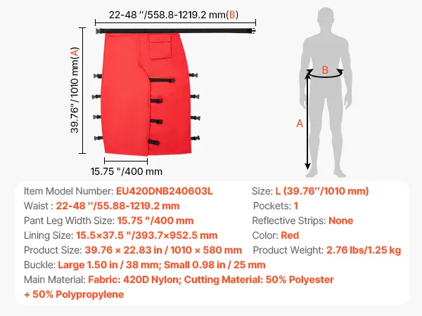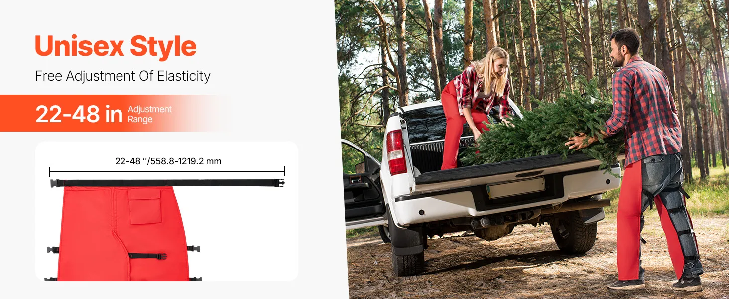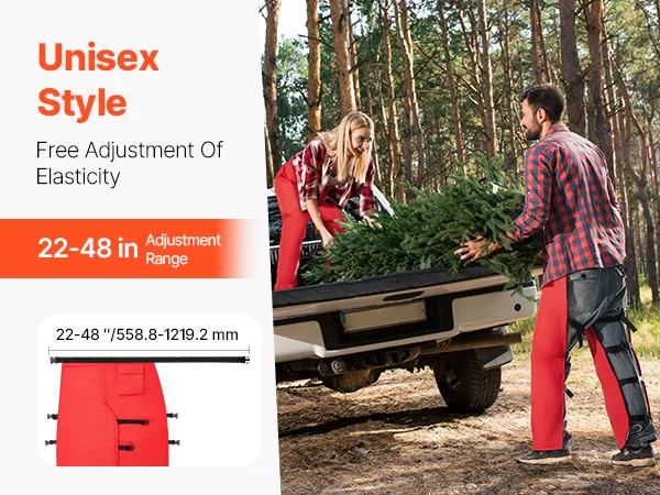 Comodi da indossare: progettati per essere versatili, questi pantaloni anti-motosega sono disponibili in diverse taglie, con cintura regolabile adatta a girovita da 22 a 48 pollici (da 55,88 a 121,92 cm) e presentano una lunghezza della gamba di 39,76"/101 cm (dalla vita alla parte superiore del piede, non fino alla lunghezza della cucitura)