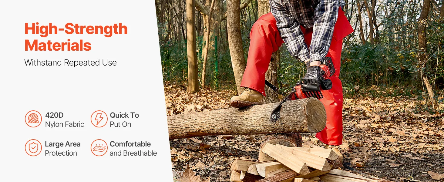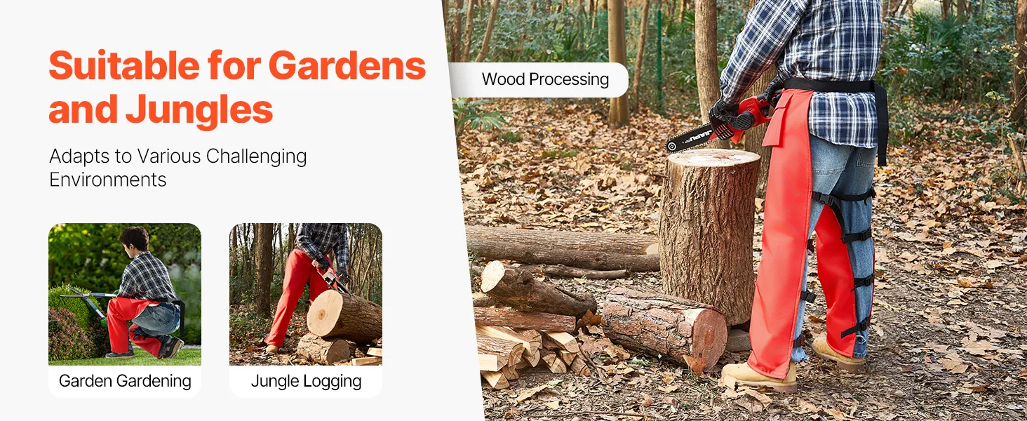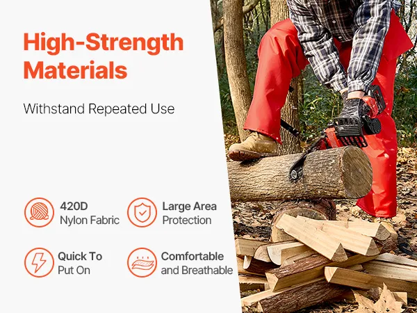 I nostri gambali protettivi per motosega coprono la parte anteriore ed entrambi i lati delle gambe, offrendo una migliore protezione durante il lavoro. Per motivi di sicurezza, ricorda: non riutilizzare i gambali per motosega dopo il taglio.