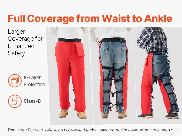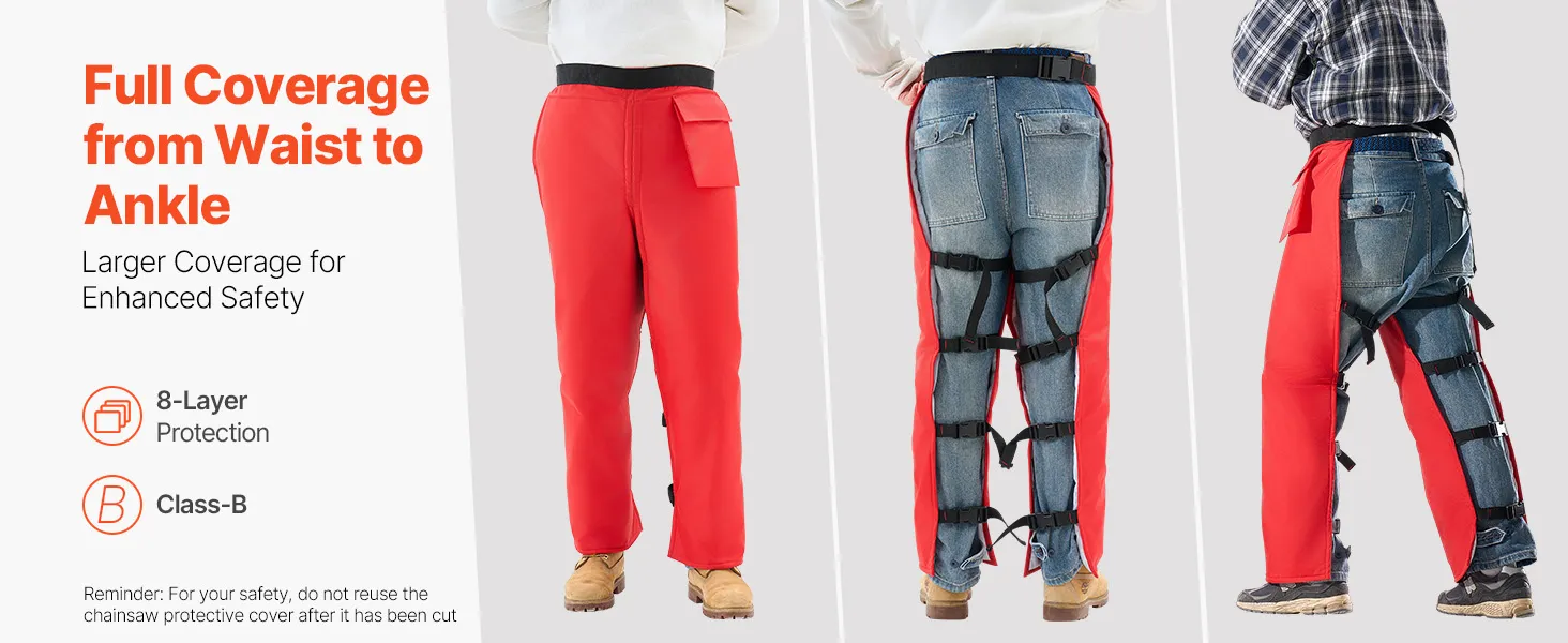 Protezione completa: i gambali antitaglio di classe B sono realizzati in 8 strati di tessuto, di cui 6 strati di materiale antitaglio e 2 strati di imbottitura per proteggere da lesioni da motosega e detriti volanti