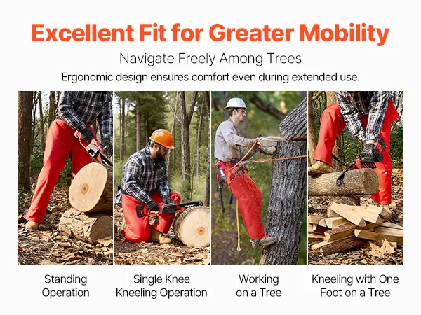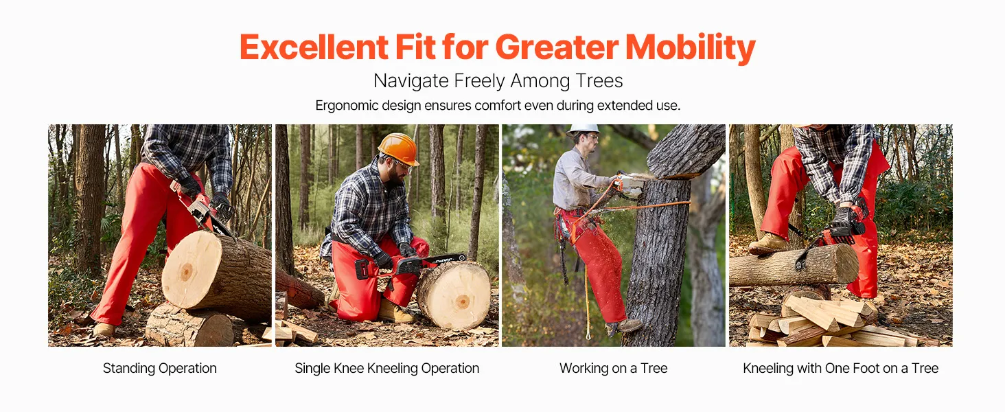 Elevato comfort: progettati ergonomicamente per una vestibilità aderente, questi leggeri pantaloni da motosega consentono una maggiore mobilità in varie posizioni di lavoro, mentre la morbida fodera interna evita lesioni da usura durante l'uso prolungato