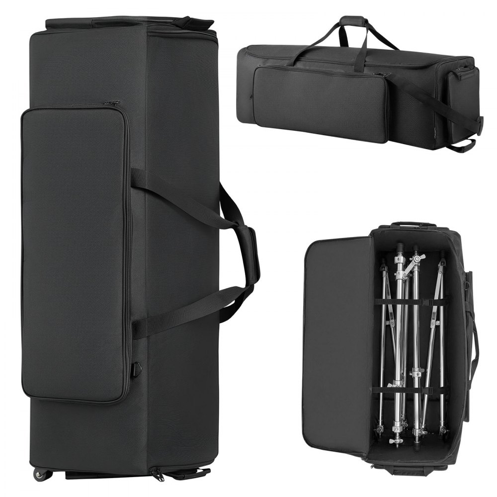 VEVOR Borsa Organizzatore Cavi DJ con Ruote in 1680D, per il Trasporto di Attrezzature per Batteria, Custodia con Maniglia Robusta, Cerniera Resistente, Ruote in PVC Liscio, Tasche Multiple, Nero