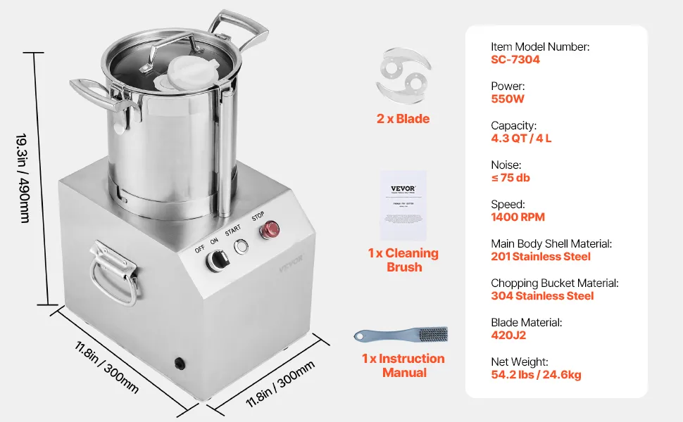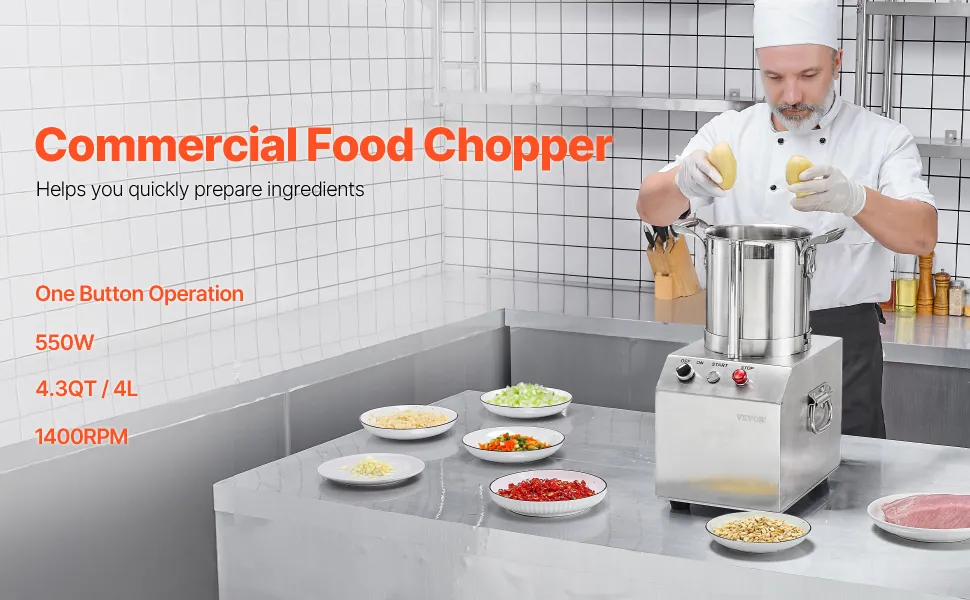 Multifunzionale: questo robot da cucina multifunzionale commerciale è dotato di lame affilate a forma di S realizzate in acciaio inossidabile 420J2 e include due lame per praticità. Perfetto per tritare vari ingredienti, tra cui verdure e frutta.