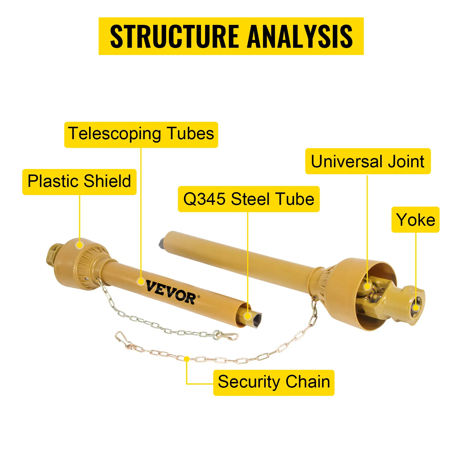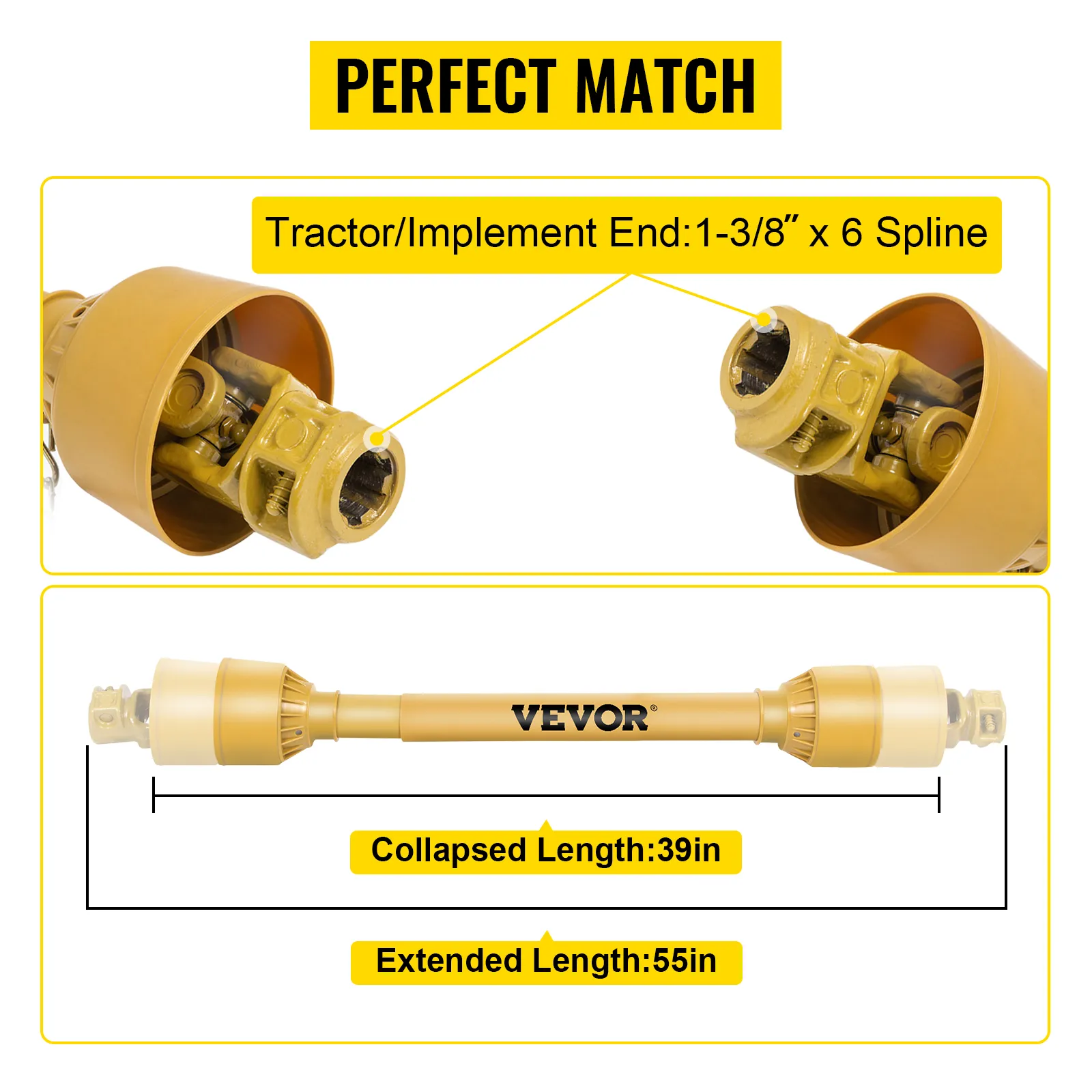 Questo albero cardanico scanalato è costruito in robusto acciaio e presenta 6 scanalature da 1-3/8"sulle estremità del trattore e dell'attrezzo. Si distingue per il suo tubo telescopico regolabile, la forte potenza e la semplice sostituzione. Può servire come utensili elettrici agricoli per migliorare significativamente la tua efficienza lavorativa.