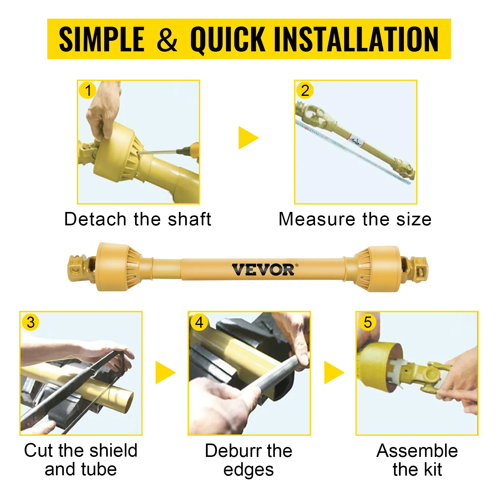 L'albero cardanico per il bush hug con estremità scanalate per attaccarsi rapidamente agli attrezzi e ai trattori. Se si desidera tagliarlo alla lunghezza corretta, leggere attentamente il manuale e ricordarsi di sbavare i bordi dopo il taglio.