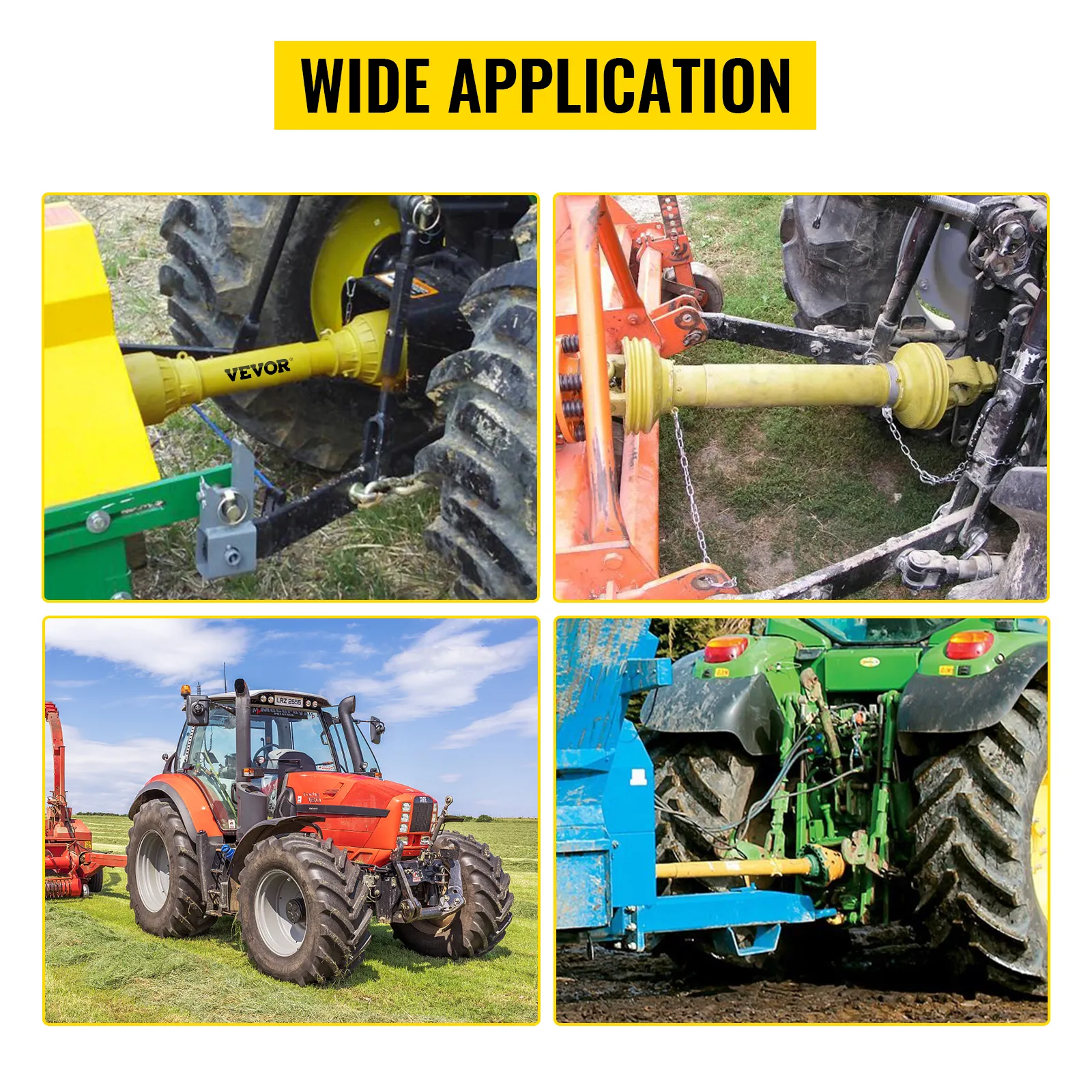 Caratterizzato dall'estremità dell'albero a 6 scanalature su entrambe le estremità del trattore e dell'attrezzo, l'albero di collegamento della presa di forza del trattore può essere abbinato ad attrezzature o macchinari agricoli alimentati da presa di forza da 1-3/8". Si distingue per la capacità di trasferimento di potenza superiore.