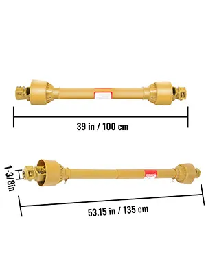 Dotato dell'estremità dell'albero a 6 scanalature su entrambe le estremità del trattore e dell'attrezzo, l'albero di collegamento della presa di forza del trattore può essere abbinato a macchinari o attrezzature agricole alimentate da presa di forza da 1 -3/8 ".