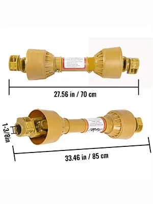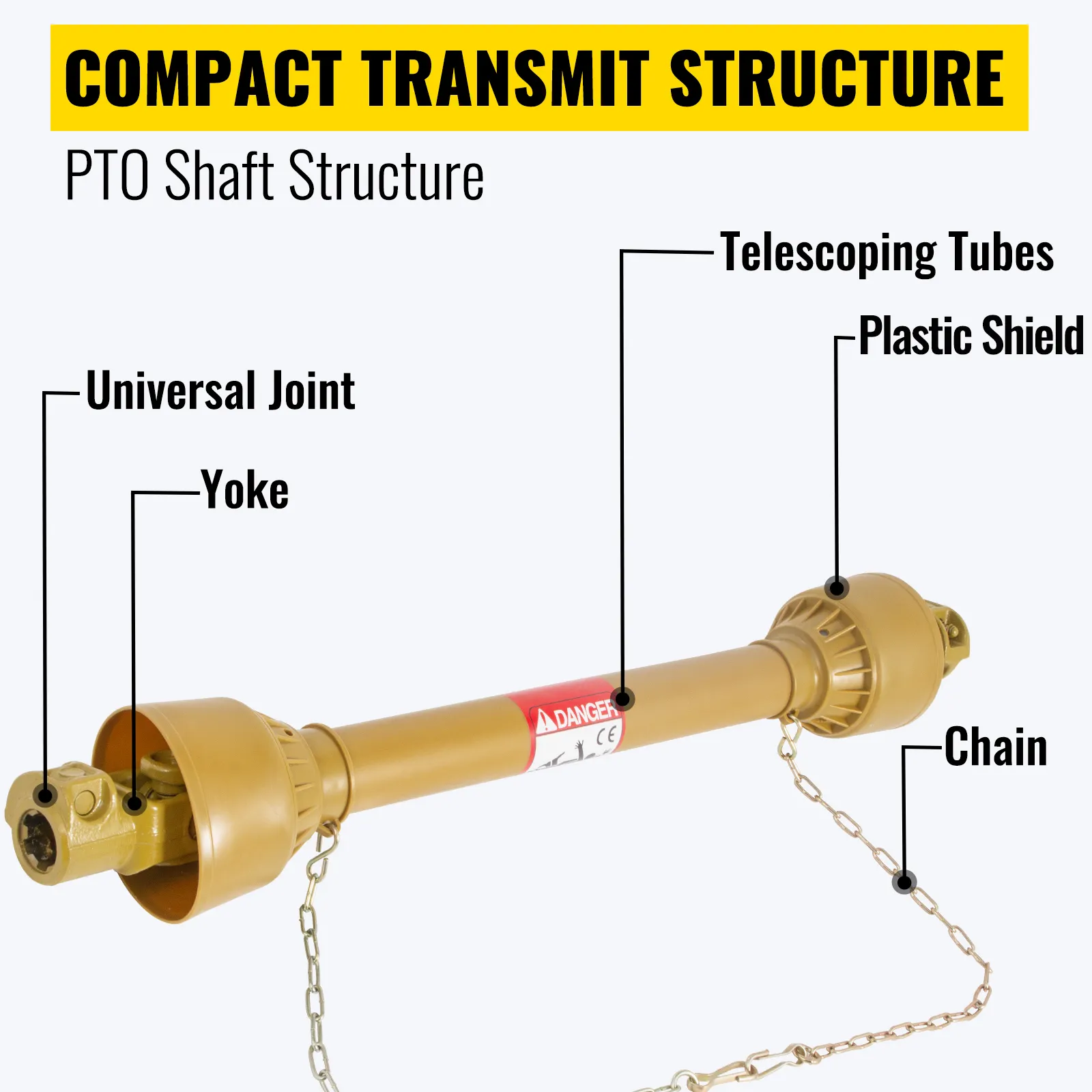 Dotato dell'estremità dell'albero a 6 scanalature su entrambe le estremità del trattore e dell'attrezzo, l'albero di collegamento della presa di forza del trattore può essere abbinato a macchinari o attrezzature agricole alimentate da presa di forza da 1-3/8 ".
