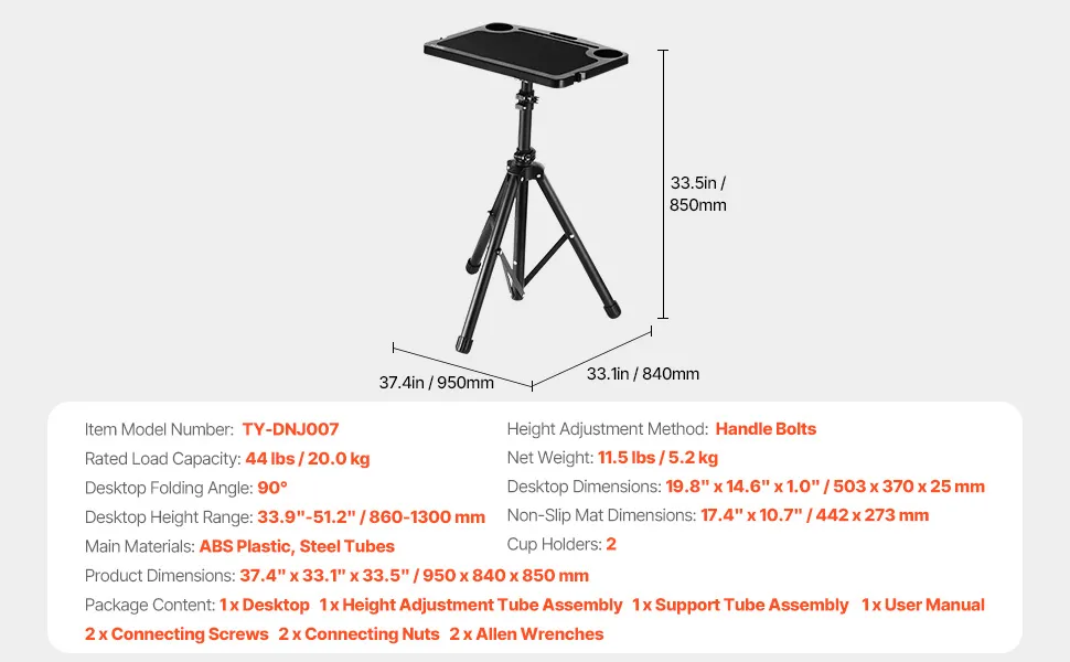 Altezza regolabile: regolando i bulloni fissi sulle aste di supporto, l'altezza della scrivania può essere aumentata senza problemi da 33,9"/860 mm a 51,2"/1300 mm, offrendo flessibilità per adattarsi a diverse altezze corporee