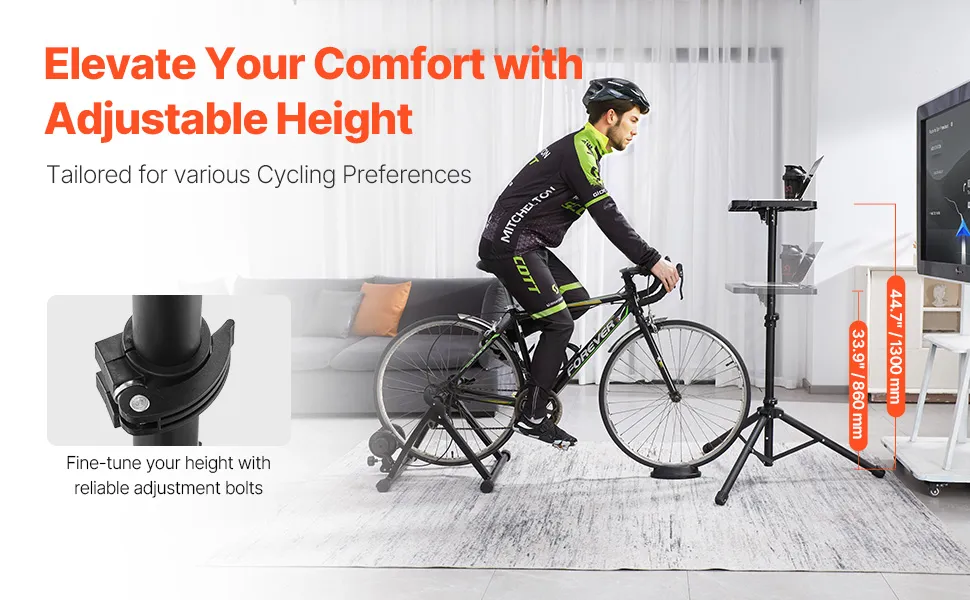 VEVOR Scrivania da Ciclismo Senza Ruote, Scrivania da Bici Pieghevole Stazione Regolabile con Supporto Triangolare Stabile, Scrivania da Fitness Multi-Slot Antiscivolo con Manubrio da Casa Ufficio