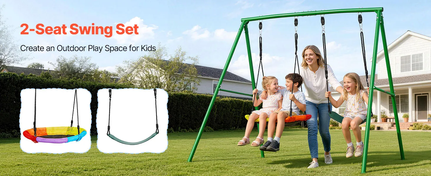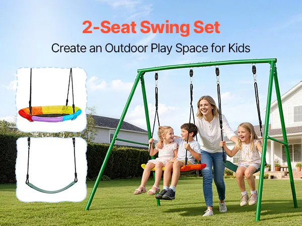 VEVOR Altalena da Giardino Telaio in Metallo a Forma di A per Bambini da Giardino Seduta Doppia Carico max 199,6 kg, Altalena da Esterno Cortile Parco Gioco per Bambini con Ancoraggi a Terra