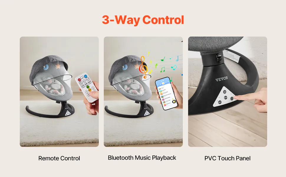 Controllo a 3 vie: regola facilmente musica, velocità di oscillazione e timer con il pannello touch in PVC intelligente o il telecomando. Scegli tra 10 ninne nanne preimpostate o collega il tuo telefono tramite Bluetooth per riprodurre musica rilassante per il tuo bambino