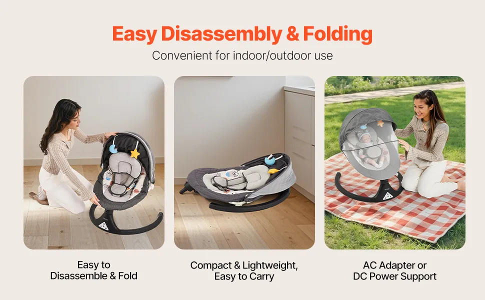 Portatile e adatta ai viaggi: con un peso di soli 7,72 libbre/3,5 kg, questa altalena compatta per neonati può essere facilmente smontata e piegata, occupando uno spazio minimo