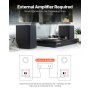 Easy Connection, Amp Required: These passive bookshelf speakers require an external amplifier for use. Just connect the included cables, red to the "+" terminal, black to the "–". And you're ready to enjoy rich, distortion-free music in minutes