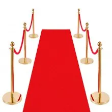 VEVOR Stanchion Post, 6 Pcs Crowd Control Barrier Set with Red Carpet, 4 Red Velvet Ropes, Stainless Steel Gold Stanchion Post Queue with Hollow Base for Theater, Party, Wedding, Exhibition (Gold)