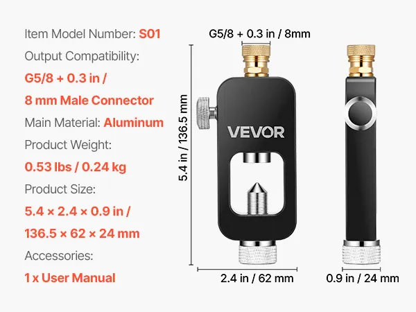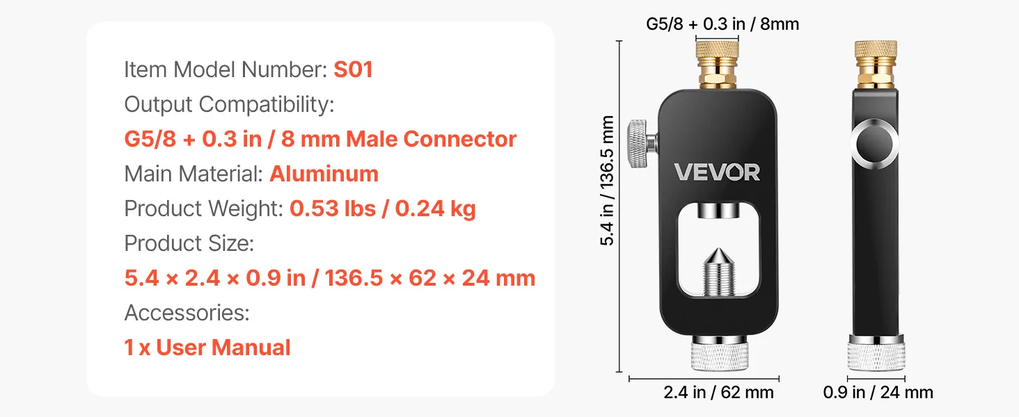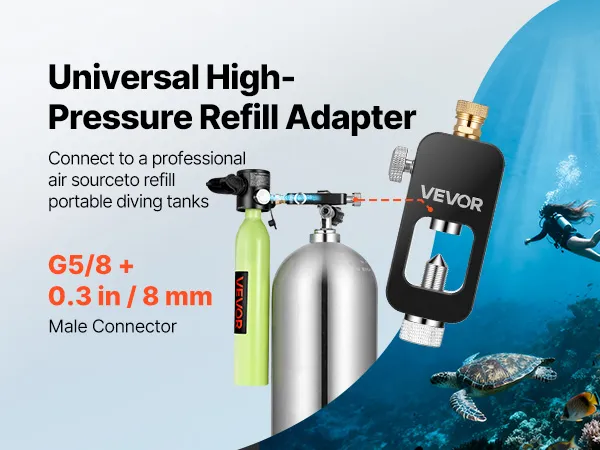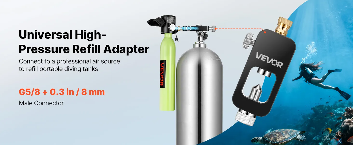 VEVOR Adattatore di Ricarica per Bombola Subacquea, Adattatore di Ricarica ad Alta Pressione per Bombola Subacqueo in Alluminio, Raccordo/Attacco Maschio da 8 mm Portatile per Immersioni Subacquee