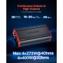 Elevata potenza e prestazioni elevate: questo amplificatore audio per auto di classe D a 4 canali eroga fino a 4 x 272 W a 4 ohm / 4 x 400 W a 2 ohm (max.) per una riproduzione audio pulita e stabile, anche ad alto volume