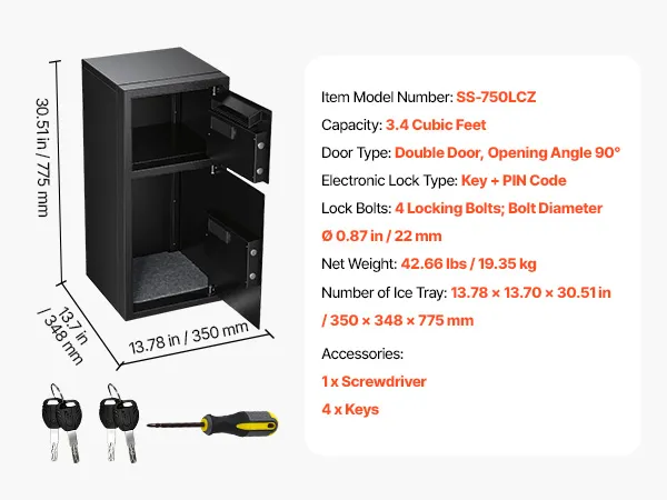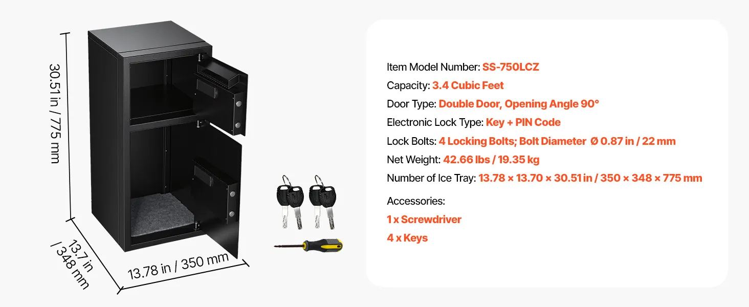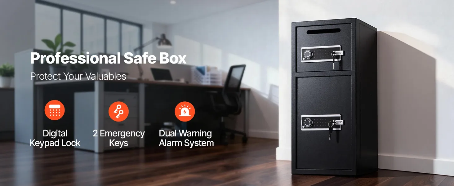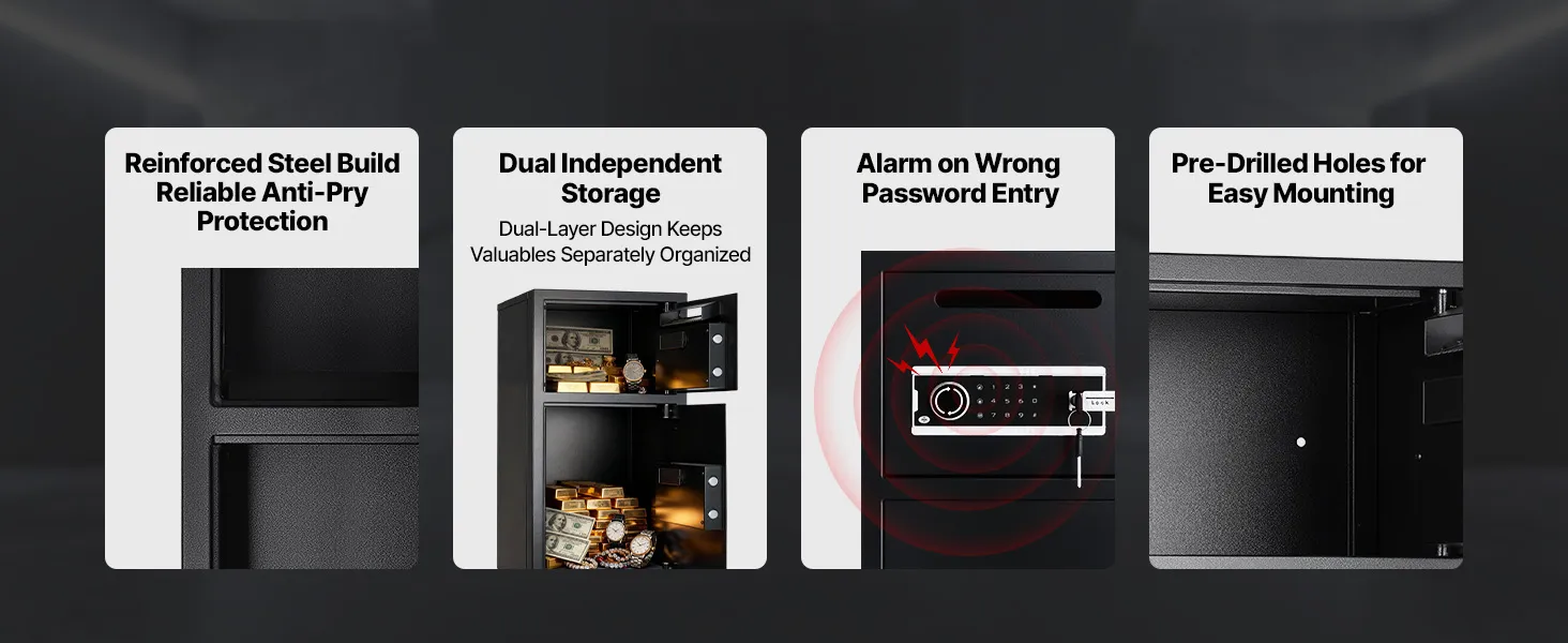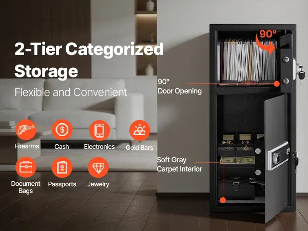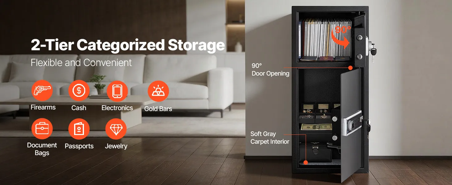 VEVOR Cassaforte a Doppia Porta Cassafforte Elettronica con Illuminazione a LED 350 x 348 x 775 mm, Ignifuga in Acciaio Laminato a Freddo con Fessura di Deposito per Denaro, Documenti, Gioielli