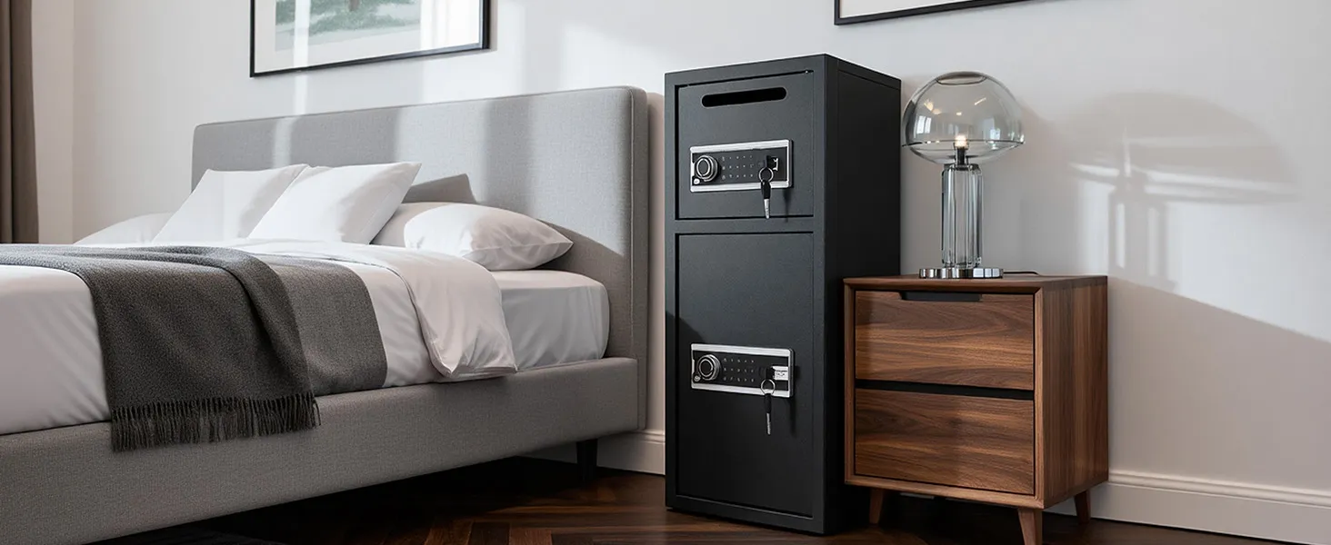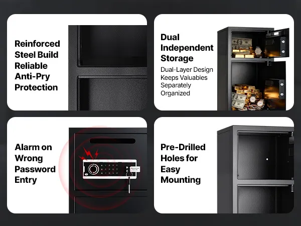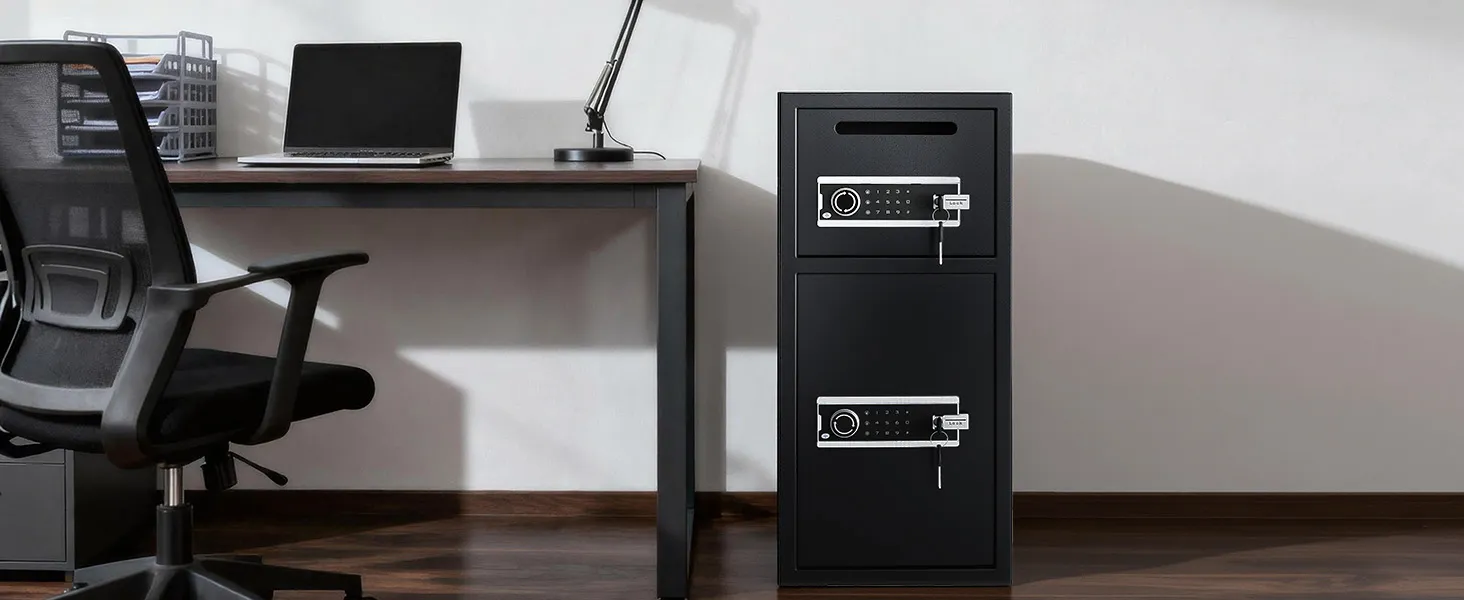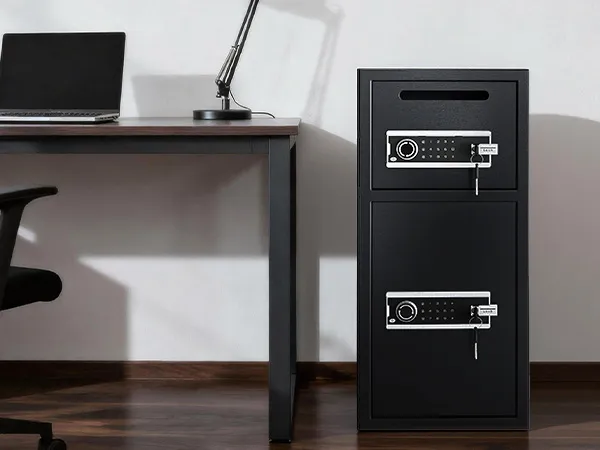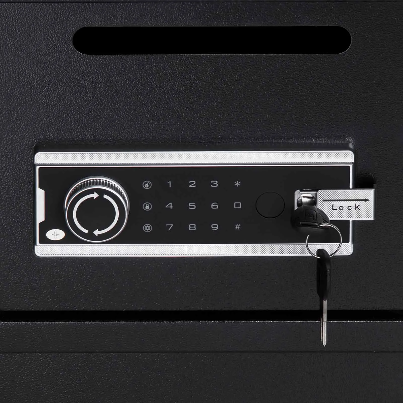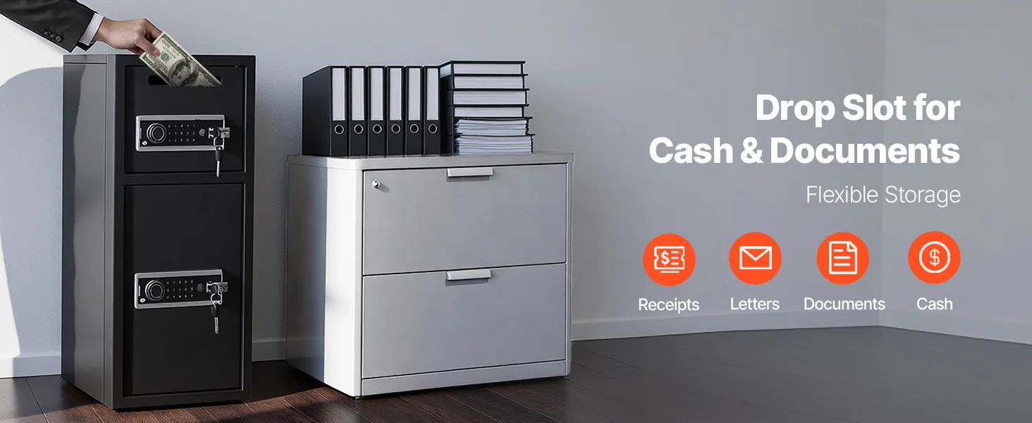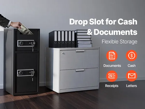 Slot per deposito rapido: contanti, buste o piccoli documenti possono essere depositati istantaneamente senza aprire la porta. Lo slot nella parte superiore della cassetta di sicurezza consente depositi giornalieri rapidi, sicuri e comodi