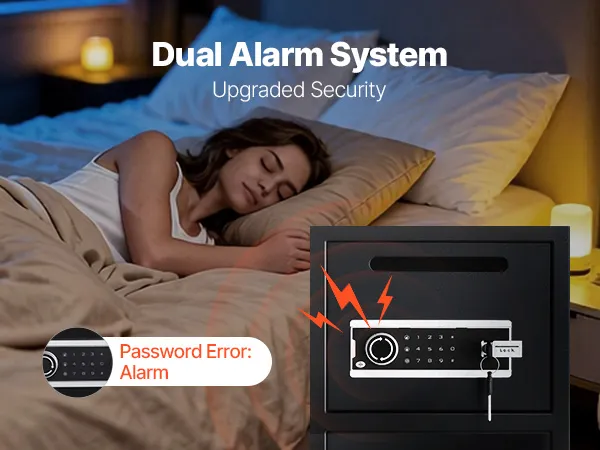 Doppio sistema di allarme: grazie al doppio livello di protezione, sei sempre in allerta. L'allarme integrato suona automaticamente dopo tre tentativi di inserimento della password errati o dopo un forte urto, prevenendo così i furti e mantenendo al sicuro i tuoi oggetti di valore