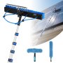 Adjustable Pole: The solar panel cleaning brush extends up to 33 ft and features a secure buckle design for easy height adjustment. It allows you to clean solar panels or windows securely and efficiently without the need for a ladder