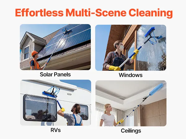 Questo kit multifunzionale per la pulizia di pannelli solari, composto da spazzola e asta, è adatto a diversi ambienti, tra cui case e giardini. Pulisce efficacemente pannelli solari, finestre, soffitti, verande, camper e cartelloni pubblicitari.