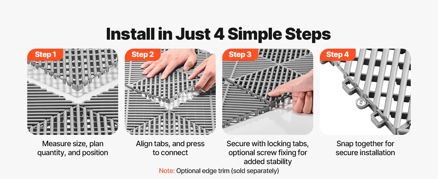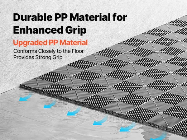 Utilizzo versatile: Le piastrelle a incastro per pavimenti da garage sono ideali per bagni, piscine e altre zone umide, nonché per cucine, ristoranti e attività di catering in cui il drenaggio e la resistenza allo scivolamento sono essenziali