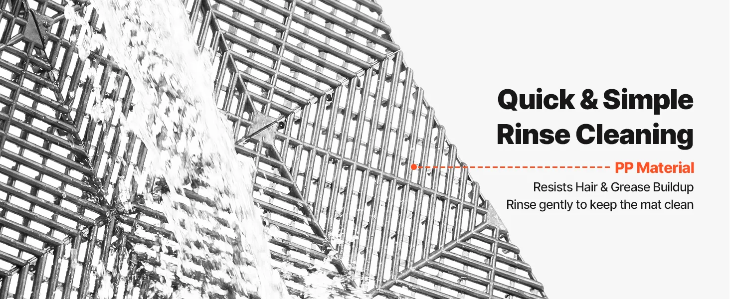 Questo tappetino drenante con struttura rinforzata espelle rapidamente l'acqua, mantenendo le superfici asciutte e antiscivolo. Realizzato in robusto PP, è resistente alla corrosione e dimensionalmente stabile.