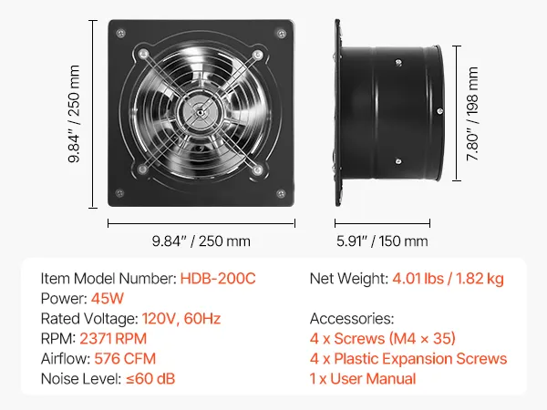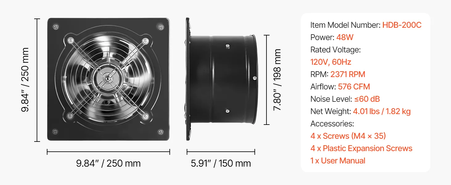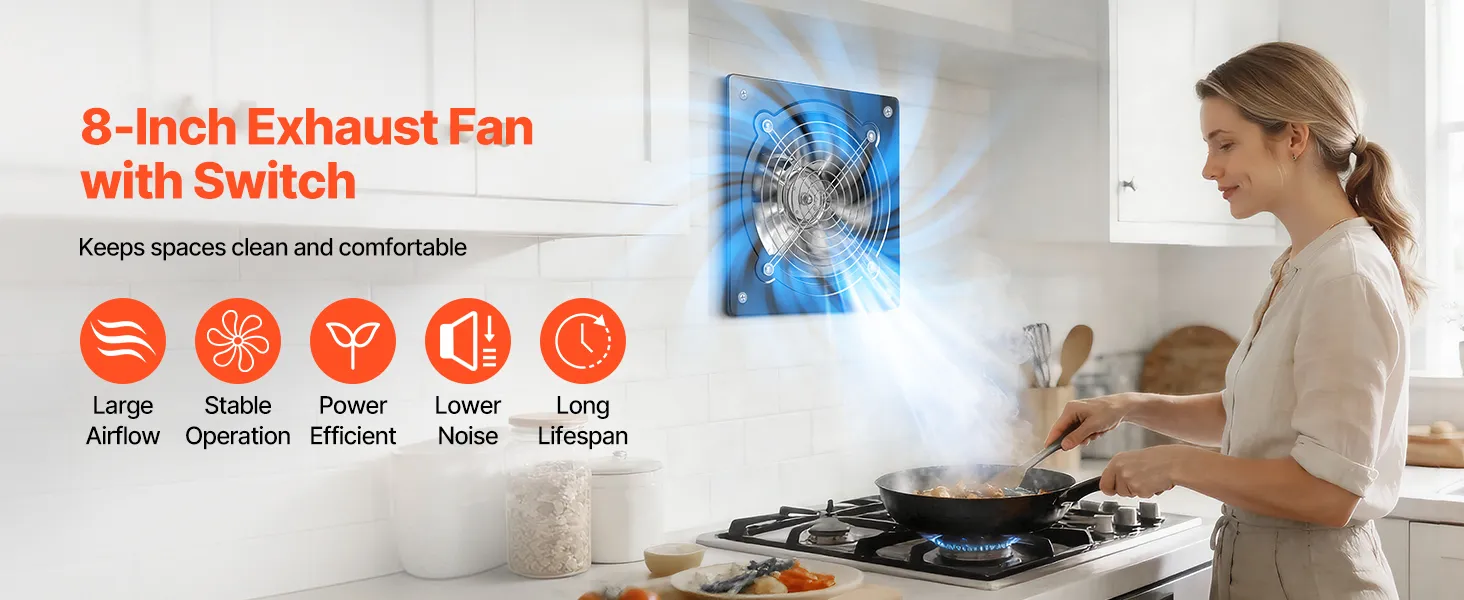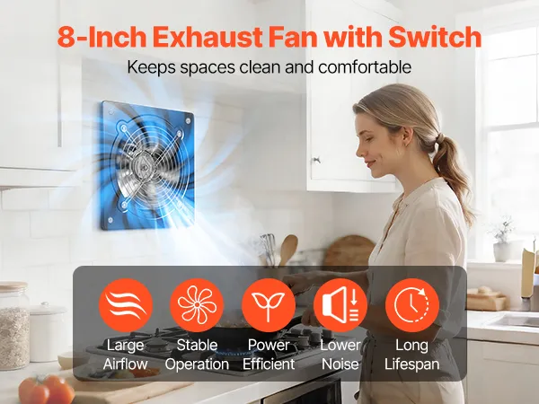 Elevate prestazioni del flusso d'aria: questa ventola di scarico da 20,3 cm / 8 pollici fornisce un forte flusso d'aria per una rapida circolazione di fumo e aria, mantenendo la cucina o l'officina fresche e confortevoli durante l'uso quotidiano