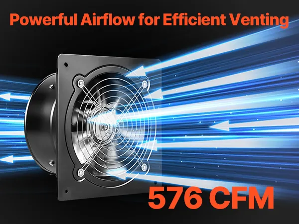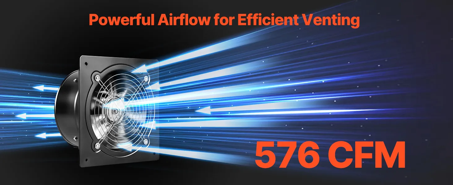 Ventilazione a risparmio energetico: la ventola di ventilazione funziona a soli 48 W erogando un potente flusso d'aria di 576 CFM, garantendo una ventilazione efficiente con un consumo energetico inferiore