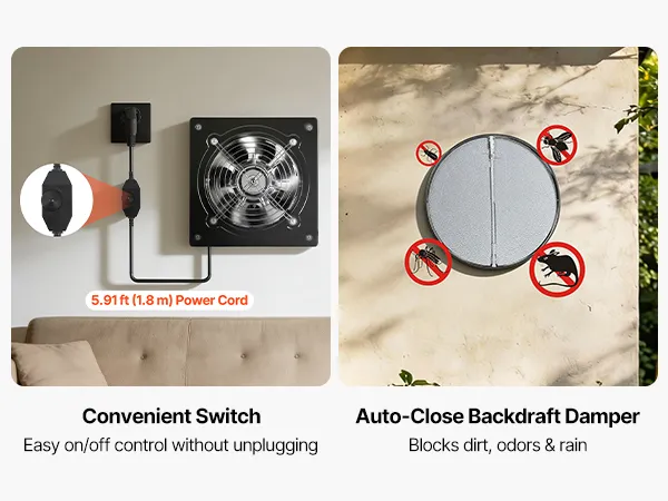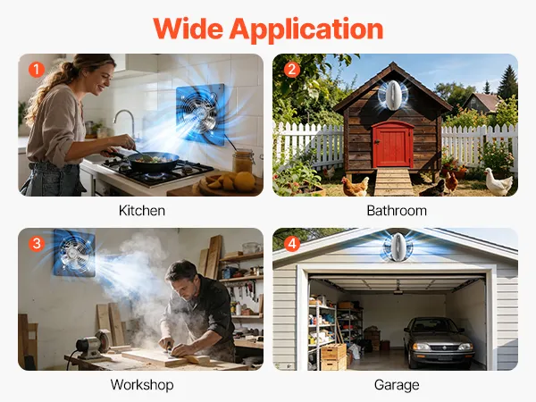 La nostra ventola di scarico in metallo è ideale per cucine, garage, officine, lavanderie, soffitte e altro ancora, garantendo una ventilazione affidabile ovunque sia necessaria aria fresca e confortevole.