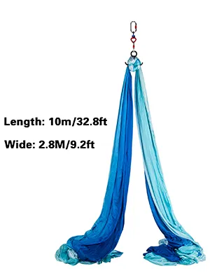 La seta aerea da 10 m / 33 piedi x 2,8 m / 9 piedi in 100% poliestere è liscia, liscia, facile da impugnare. Adatto a principianti che imparano a scalare e le gocce di pratica con esperienza.