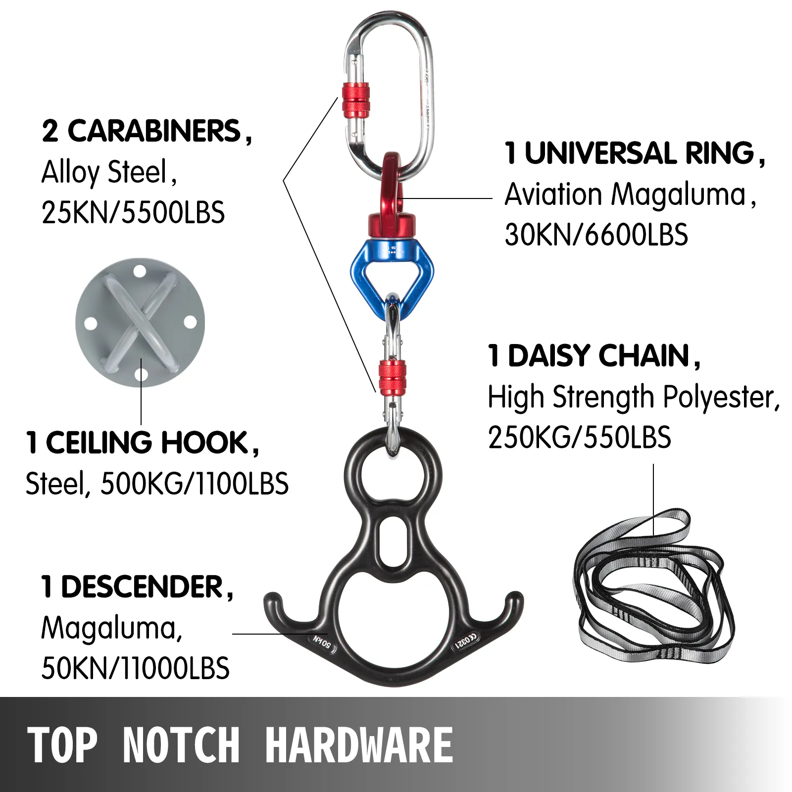 • 【FERRAMENTA PER ARRAMPICATA】 - I moschettoni con chiusura a vite in acciaio legato con grado di carico 25KN e il discensore Magaluma con 50KN sono sicuri e robusti. La girella 30KN Aviation Magaluma ti consente di goderti la libertà di infinite rotazioni lisce assicurandoti che la seta non si attorcigli. Un gancio a soffitto in acciaio e quattro viti funzionano bene con una struttura in cemento. Con il collegamento a margherita, il kit di seta aerea può essere fissato attorno a un ramo solido.