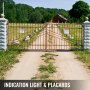 rural gate with VEVOR electric gate opener, indication light, and safety placards.