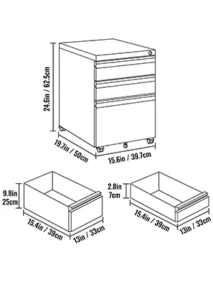 Il nostro armadio ti offre diverse opzioni per mettere i tuoi documenti e oggetti nei tre cassetti in base alle tue preferenze ed esigenze.