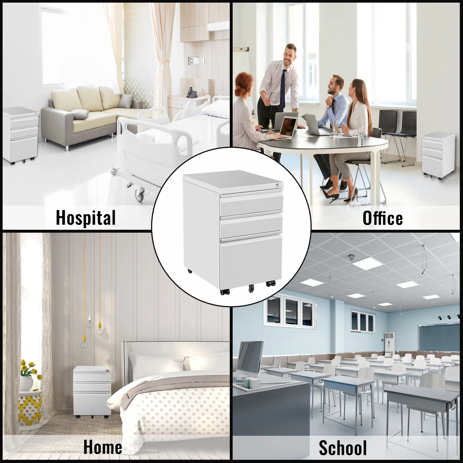 Questo semplice armadio a tre cassetti può posizionare meglio i tuoi file e oggetti per raggiungere lo scopo di liberare lo spazio sulla scrivania in casa, in ufficio, in ospedale e in molti luoghi. Le sue cinque ruote ti aiutano anche a spostarlo e ripararlo bene, e puoi metterlo ovunque tu voglia. La maniglia e il binario di scorrimento umanizzati possono migliorare il tuo comfort.