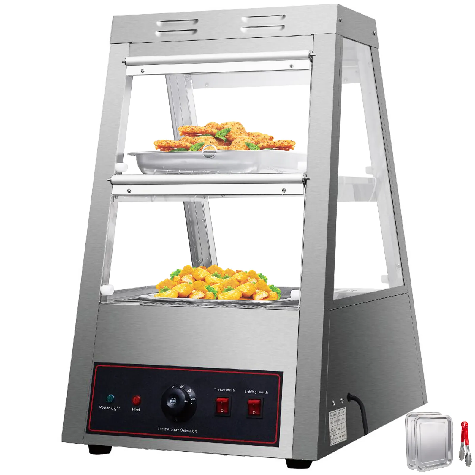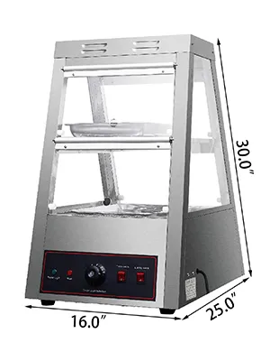 Questo scaldavivande da appoggio da 800w è realizzato in acciaio inossidabile 304, vetro temperato e materiale PC, resistente e stabile. Le porte basculanti facilitano l'accesso al cibo. Con una temperatura di 30-85℃ (86-185℉) regolabile, è adatto a vari alimenti, tra cui pizza, torte, hamburger, ecc.